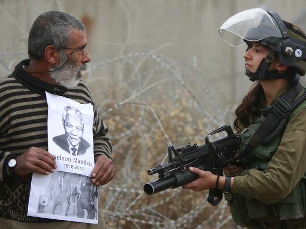 Na última sexta-feira, manifestantes palestinos, que saíram às ruas de aldeias na Cisjordânia para protestar contra a construção do muro israelense, portavam fotos de Nelson Mandela.
