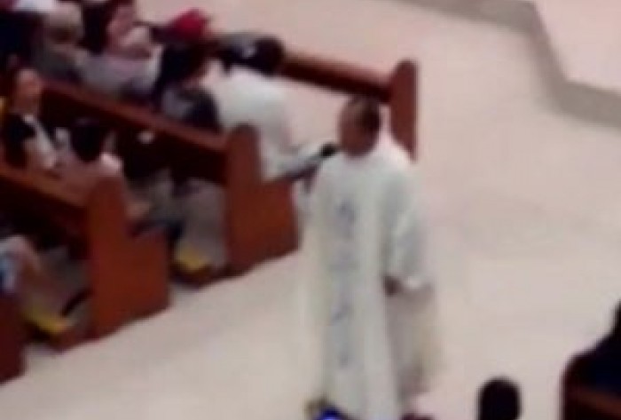 O religioso, que não teve o nome divulgado, pode ser visto circulando por uma igreja na província de Laguna, em meio a aplausos dos fiéis.
