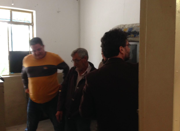 Ali há mau cheiro e condições precárias de permanência, inclusive com fios sobre madeira, que oferecem risco de incêndio. Há dois beliches velhos, com colchões, e uma mesa encostada na parece, onde um funcionário almoçava.